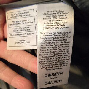 Women's EDDIE BAUER midi-length navy blue down-filled puffer parka coat. New without tags and in new/excellent quality and condition. Shell is 53% nylon, 32% polyester and 15% cotton. Lining is 100% polyester. Faux fur is 85% modacrylic and 15% polyester. Insulation is 80% down-filled. SIZE PETITE SMALL/MEASUREMENTS: pit - pit = 19" x 36" long. This is an extremely nice coat.