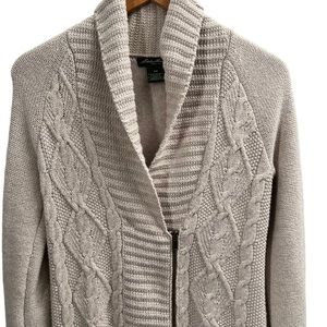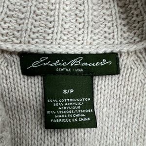 EDDIE BAUER NWOT Asymmetrical Cotton Blend Cable Knit Zip Shawl Collar Wms SM