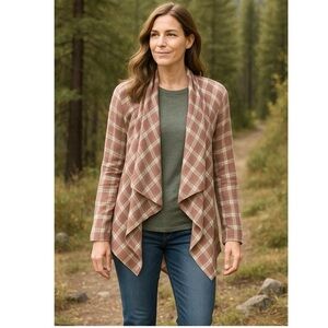 EDDIE BAUER Plaid Open Waterfall Roll-tab Top