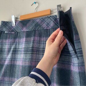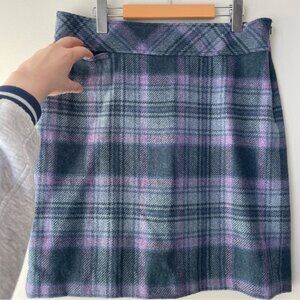 EDDIE BAUER Plaid Skirt Mini Pencil High Waisted Wool Blend Purple Blue 12P