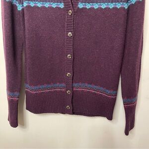 EDDIE BAUER Plum Purple Fair Isle Sweater Cardigan, Small