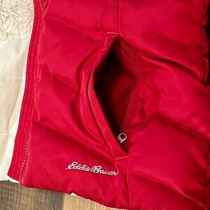 EDDIE BAUER Puffer Vest Goose Down Sherpa Gray Red Quilted Zip Jacket Womens XS