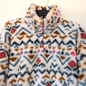 EDDIE BAUER Pullover Women's L Multicolor Aztec 1/4 Zip Mock Long Sleeve Sweater