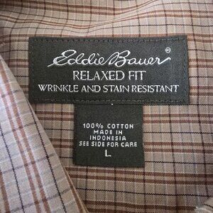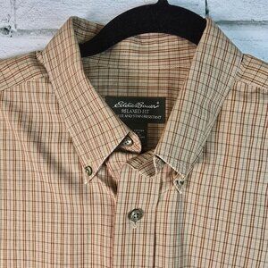 EDDIE BAUER RELAXED FIT WRINKLE RESISTANT LONG SLEEVE TAN PLAID SHIRT SIZE LARGE