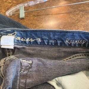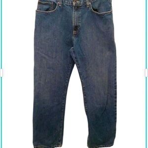 EDDIE BAUER Relaxed Fit Preowned Jeans 32x30 Logo Patch. Inside tag reads 34x32. Actual measurements are approx 32 Waist x 30” Inseam. PA 163
