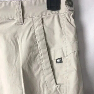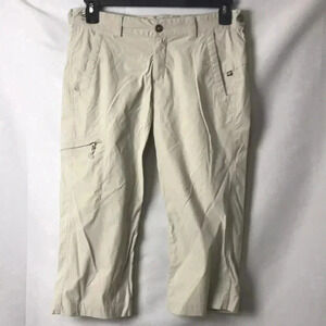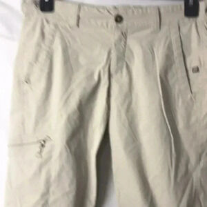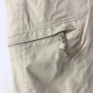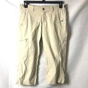 EDDIE BAUER SPORT SZ 10 BEIGE CAPRI PANT NYLON SPANDEX BLEND. ADJUSTABLE WAIST MULTIPOCKETS LENGTH MEASURES APPROX29” INSEAM MEASURES APPROX 20” WAIST MEASURES APPROX 16” FROM SIDE TO SIDE