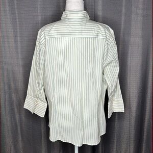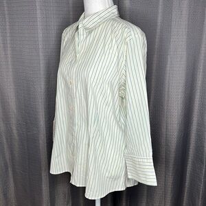 EDDIE BAUER STRETCH WRINKLE RESISTANT XL GREEN YELLOW STRIPED BUTTON FRONT SHIRT