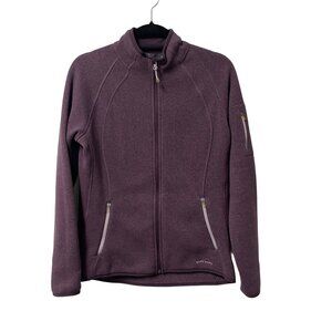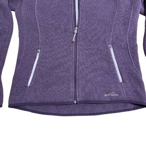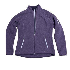 EDDIE BAUER SWEATER FULL ZIP WOMENS L KNIT FLEECE LINED POCKETS COMFORT PURPLE