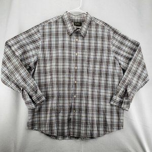 EDDIE BAUER Shirt Men's Long Sleeve Casual Button Up Collared Plaid Brown 2XL