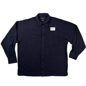 Stay warm and stylish with the EDDIE BAUER Men's Snap-Up Long Sleeve Shirt. This large, blue collared shirt has a casual, solid pattern snap-up style, perfect for any occasion.