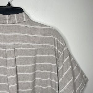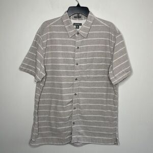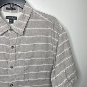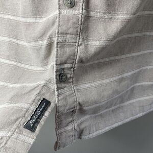 EDDIE BAUER Shirt Mens XL Linen Cotton Button-Up Tan Striped Classic Fit