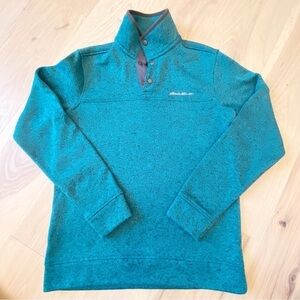 EDDIE BAUER Teal Blue 1/4 Front Snap Sweatshirt Sweater Pullover