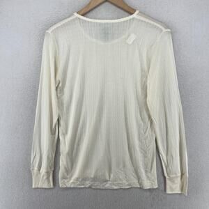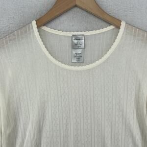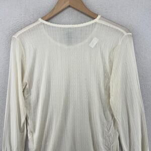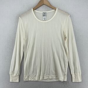 EDDIE BAUER Top Womens M Silk Pointelle Long Sleeve Base Layer Off White