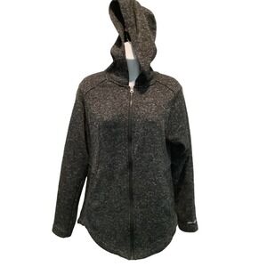 EDDIE BAUER women’s lightweight full front zip jacket. Size L. In excellent codition. From trail to town stay warm in this hooded jacket with brushed fleece inside. Nubby gray/white texture. 2 outside pockets. Not too heavy, a great piece for layering.