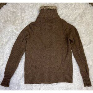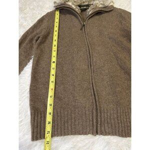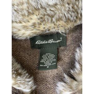 EDDIE BAUER Women Brown Wool Alpaca Blend Faux Fur Sweater Jacket Cardigan SMALL