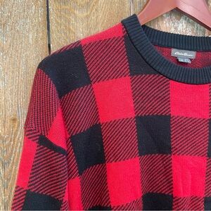 EDDIE BAUER Women’s Buffalo Red Black Check Crewneck Sweater Size Medium