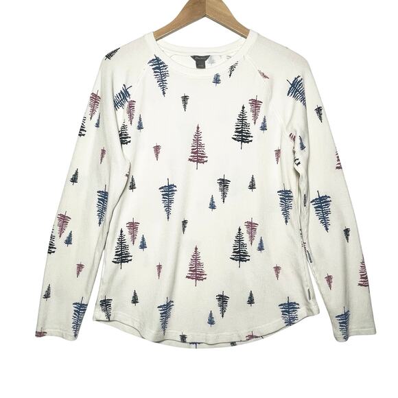 EDDIE BAUER Women’s Christmas Tree Cream Long Sleeve Waffle Knit Top