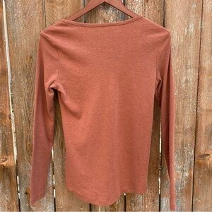 EDDIE BAUER Women’s Rust Brown Henley Round Neck Long Sleeve T Shirt Size Medium