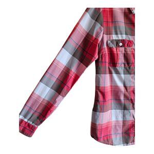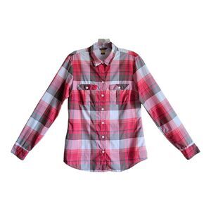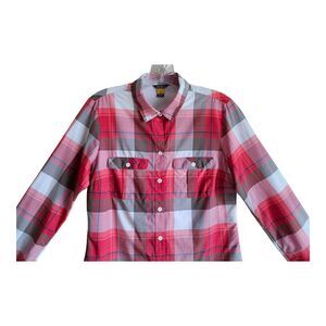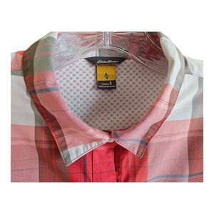 EDDIE BAUER Women's S Shirt Button Up Coral Plaid Long Sleeve Quick Dry 36"