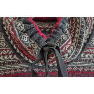 EDDIE BAUER Women's Size S Oslo Sweater - Fair Isle, Drawstring Funnel Neck, Red, Gray, Side Slits, Logo, 40% Cotton, 30% Nylon, 30% Wool