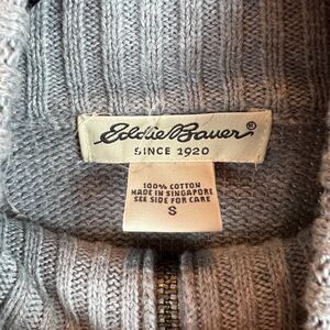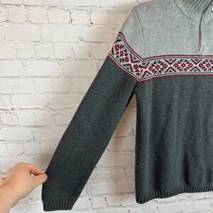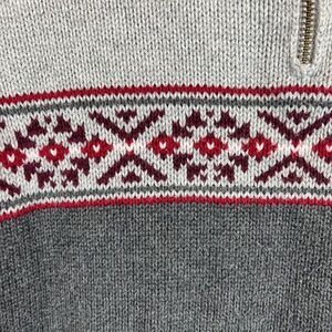 EDDIE BAUER fair isle knit cotton gray zipper mock neck sweater pullover top S