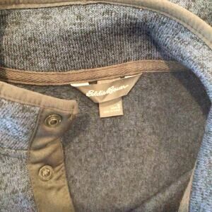 Classic Eddie Bauer outdoor wear quality fleece pullover in heathered navy