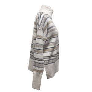 EDDIE BAUER Striped Top Sweater Mock turtleneck, Medium. Striped creamy white