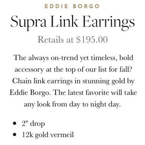 Eddie Borgo 12k gold platted vermeil thick chain link necklace & 12k gold platted matching earrings set. Retail $650. Brand New earrings and worn twice necklace. Comes with original jewelry duster pouch. Perfect statement or gift set. Necklace missing plastic wrap and pouch.