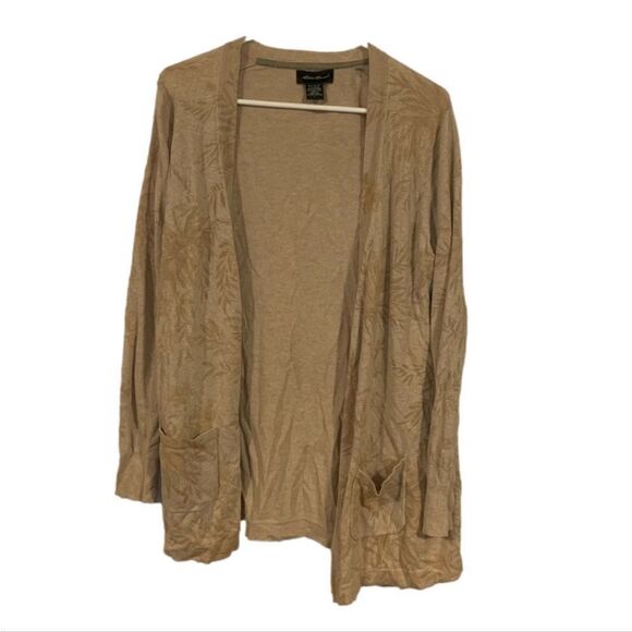 Cardigan sweater Eddie Bauer Tan Leaves pattern Buttons Large Brand new without tags