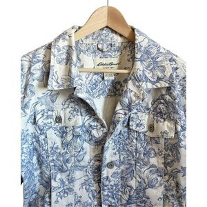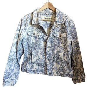 EDDIE Bauer Vintage 90s Wedgewood Floral Rigid Denim Jacket Large