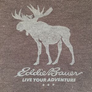 Eddie Bauer waffle knit, long sleeves, dark blue sweater with deer print on the front. Crew neck.Soft and comfortable. No rips, no stains,no holes. Good pre-owned condition. Please see photos for all measurement.