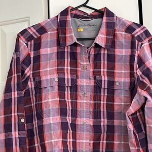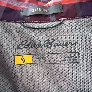 Polyester and nylon. Classic fit. Colors are pink, purple, red and white. Back is vented. 2 front pockets. Sleeves are adjustable. Approx. armpit to armpit measure is 22 inches. Approx. length is 27.5 inches in front and 28.5 inches in back.