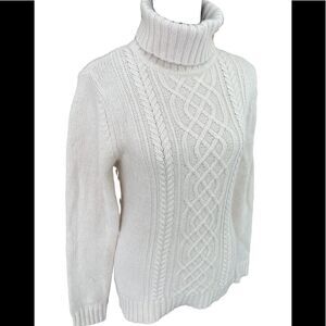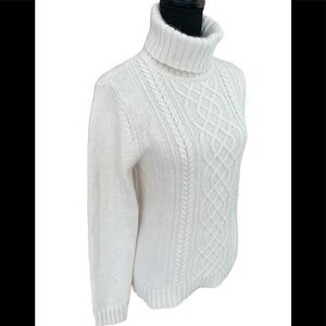 EDDIE Bauer off white cable knit front turtleneck sweater, angora blend, size S