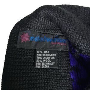 EDELWEISS SKIWEAR Winter Hat Black Purple Geometric Knit Pattern VINTAGE Unisex