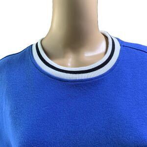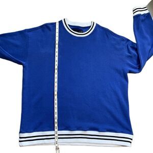 EDGAR + ASH Blue Striped Trim Crew Neck Academia Pullover Sweatshirt Size Extra Large