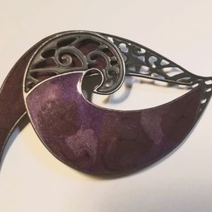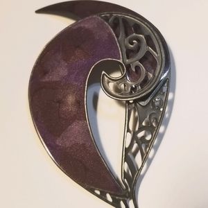 Pretty Vintage Gun Metal Modernist Purple enameled Brooch by Edgar Berebi. In Excellent Vintage condition. Measures 3" at longest point.