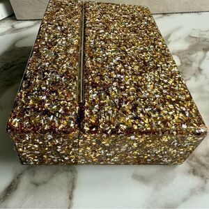 ✨ EDIE PARKER ACRYLIC CLUTCH – GOLD CONFETTI & RAINBOW STRIPE | HANDMADE | RARE