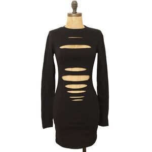 EDIKTED Nordstrom Slashed Mini Dress XS Bodycon Long Sleeve Sexy Black NWT B37