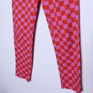 EDIKTED Rory Checkerboard Denim Jean Red Pink High Rise Straight Cut Pant Women's S