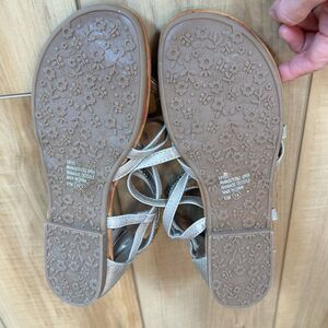 EDL Presents Pop Eiffel Antique Gold Embellished Strappy Sandal Size 8 1/2