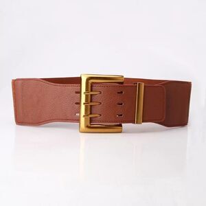 EDUARD - High Quality Vegan Leather Embellished Elastic WIDE BELT BROWN