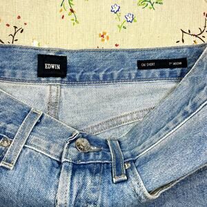 EDWIN Denim Short Cai 7-inch Inseam Light Wash Blue Sz 28 Raw Hem High Rise Boho