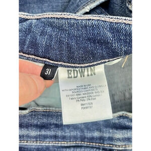 EDWIN Jeans 31 x 33 Maddox Slim Fit Straight Leg Shelter Blue Denim Stretch $208