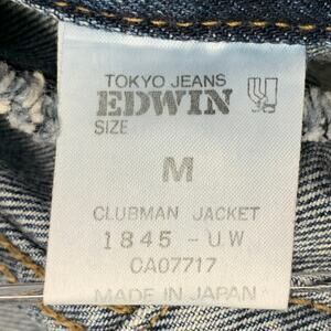 Vintage EDWIN "Clubman" jacket in a blue cotton denim twill featuring an acid washed design, Type III style, and button closure. Made in Japan.