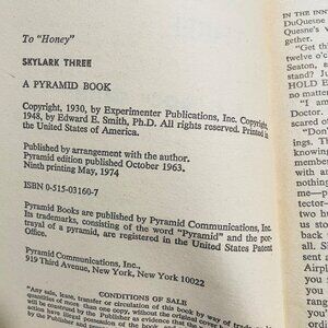 E.E. "Doc" Smith's "Skylark Three" is a classic science fiction novel from the Skylark series. Originally published in 1930, this 1974 Pyramid Books edition offers readers a glimpse into space adventures. The narrative focuses on the daring missions of the Skylark spacecraft as it faces alien threats.