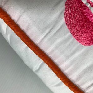 E&E Embroidered Pink Gray Flower Throw Pillow Sofa Bed Orange Pipping Decorative. Measures 15" X 12". No flaws.