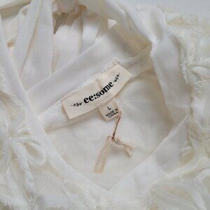 EE: Some Ivory Floral Textured Puff Sleeve Top Relaxed Fit Size Large