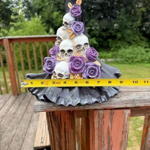 EERIE CHARM Large ELEGANT HALLOWEEN WITCH STATUE W/ROSE & SKULL DRESS New