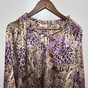 EE:Some Animal Print Shirt Bubble Sleeve Ruffle Collar Women's Size Large NWT
