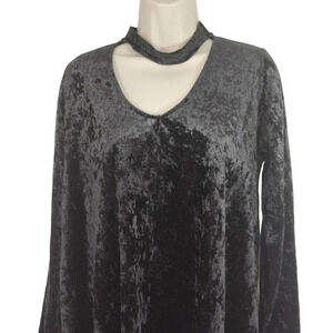 EE:Some Black V-neck Dress Velour Choker Neckline Women Size M Long Sleeve
